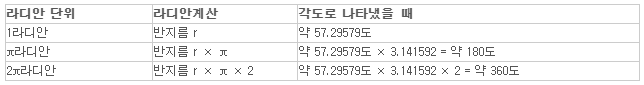 먼저 호도법(라디안, radian이라고도 합니다.)에 대해서 생소하기도 하고