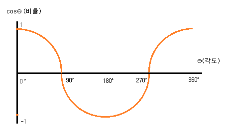 이것을 코사인 그래프라고 하는데 아래 그래프와 같습니다.