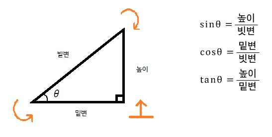 삼각비에는 코사인, 사인, 탄젠트가 있는데 용어가 너무 생소하지요?