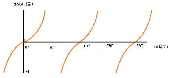 탄젠트는 밑변길이분의 높이의 비율입니다.