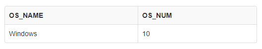 | CREATE TABLE TB_OS ( OS_NAME CHAR(10), OS_NUM NUMBER ); INSERT INTO TB_OS VALUES('Windows', 10); SELECT* FROM TB_OS; |