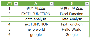 각 원본 텍스트를 올바른 대소문자로 변환하고 싶다면 다음과 같이 PROPER 함수를 사용할 수 있습니다.