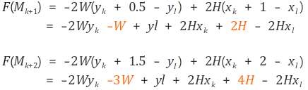 F(Mk+1) = -2W( yk + 0.5 - yl ) + 2H ( xk + 1 - xl )